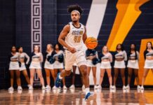 Allenspach also stopped a couple of fast breaks when Samford’s press D was broken with his height and length where NDSU was forced to pass it back out.