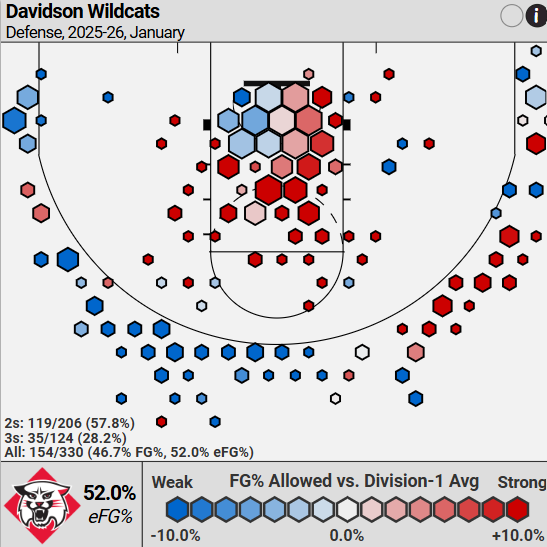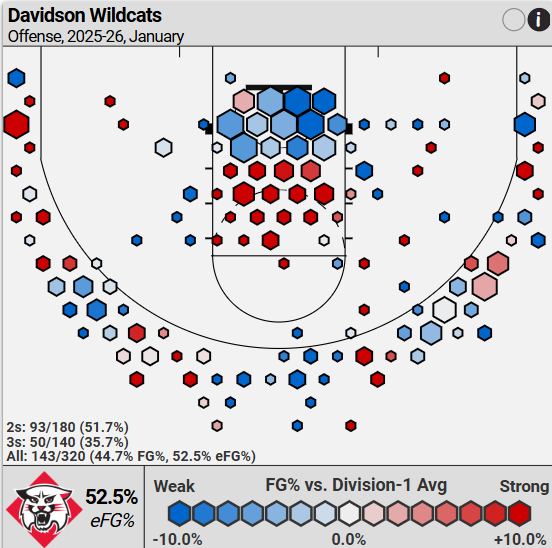 Since conference play started, per Torvik, Davidson has played like the 141st team, with the 196th offense and 122nd defense.
