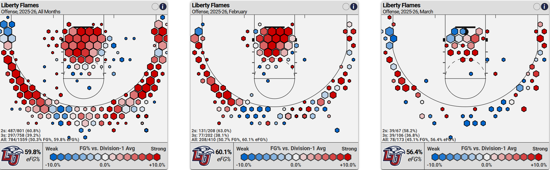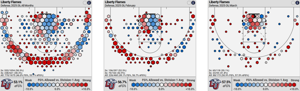 If you filter Torvik for just the past month, Liberty is the 228th ranked team, with the 76th offense and 341st defense. Fine offense. You cannot be bottom 25 in defense.